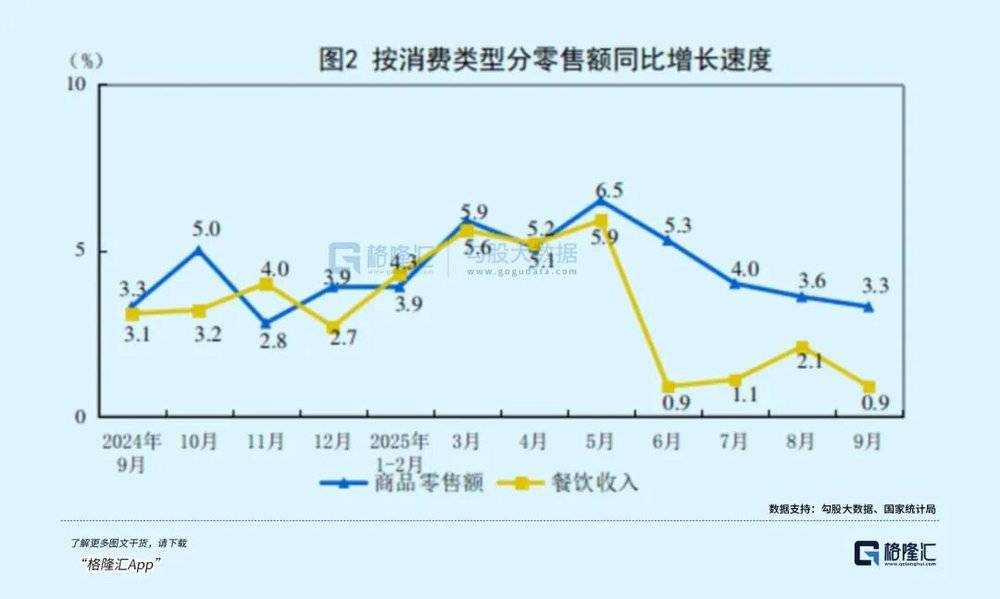 社零是个总量,其中与老登们又相对密切的有餐饮,餐饮行业增速 6 月发生了断崖式下跌,7、8 月有微微好转,但 9 月又重新大幅掉头向下,仅增长了 0.9%,其中规模以上的餐饮企业的收入表现更差,下滑了 1.6%。所以许多人关注的餐饮企业像海底捞,现在除了股息率,没有其他吸引力。