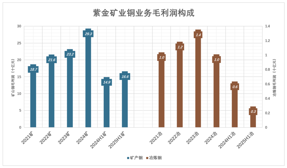 紫金矿业矿产铜毛利润率不输矿产黄金,冶炼铜则是 「陪太子读书」: