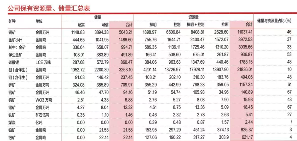 2025 年 H1,紫金矿业矿山产金 38.2 吨,新增金资源量 88.8 吨 (含储量 34.5 吨);矿山产铜 43.9 万吨,新增铜资源 204.9 万吨 (含储量 132.2 万吨)。