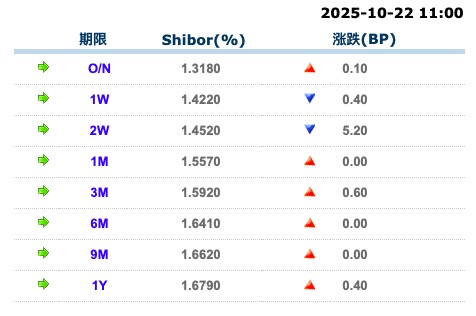 上海银行间同业拆放利率 (10 月 22 日)