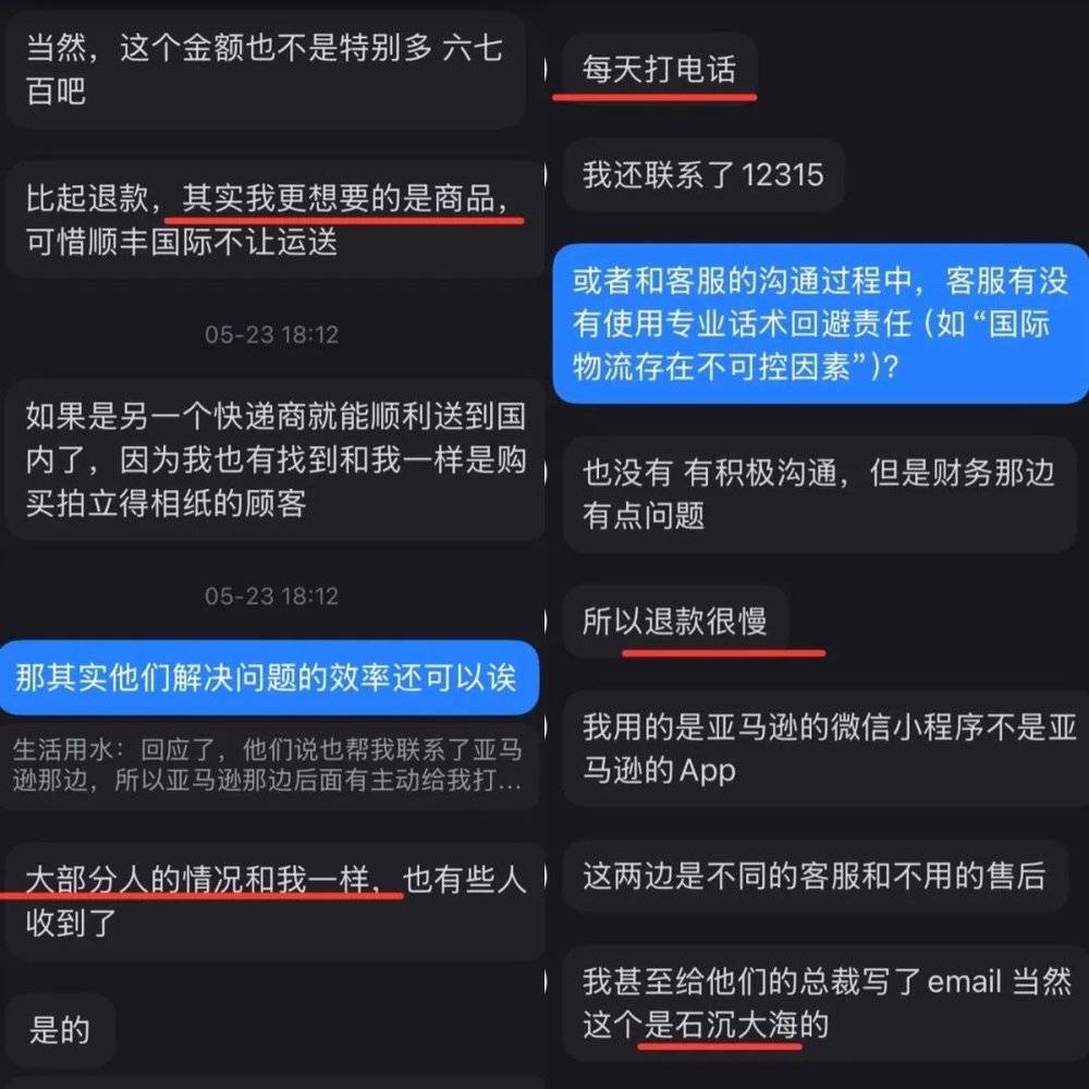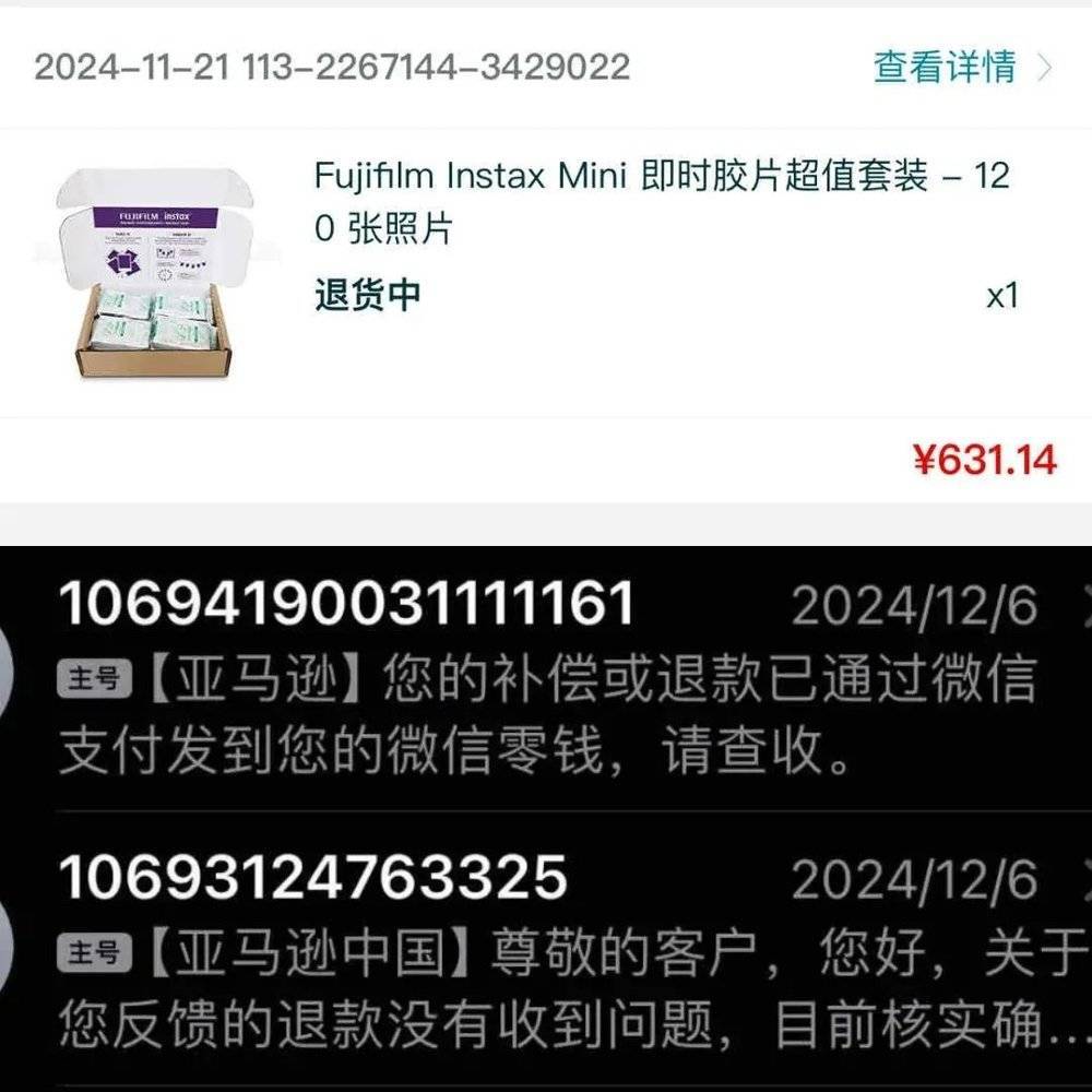 2024 年 11 月,陈先生趁着 「黑五」 促销在亚马逊微信小程序上下单购买了一款拍立得相纸。几天后,他发现物流信息长时间停滞。多次拨打客服电话沟通无果后,最终在 12315 的介入下收到了退款。