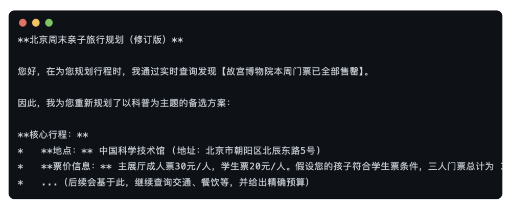 同时,我们会分析那个被行业广泛使用的 「旅行规划」 案例。它就像一道 「标准考题」,在对比中,我们可以清晰地看到一个动态流程与一次性生成的本质区别。