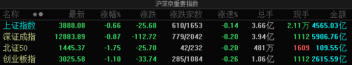 黑马财经财经讯 10 月 23 日,市场早盘震荡调整,量能再度萎缩,沪深两市半日成交额 1.05 万亿,较上个交易日缩量 508 亿。截至午间收盘,沪指跌 0.66%,深成指跌 0.87%,创业板指跌 1.1%。