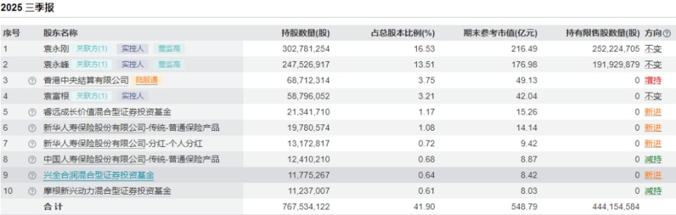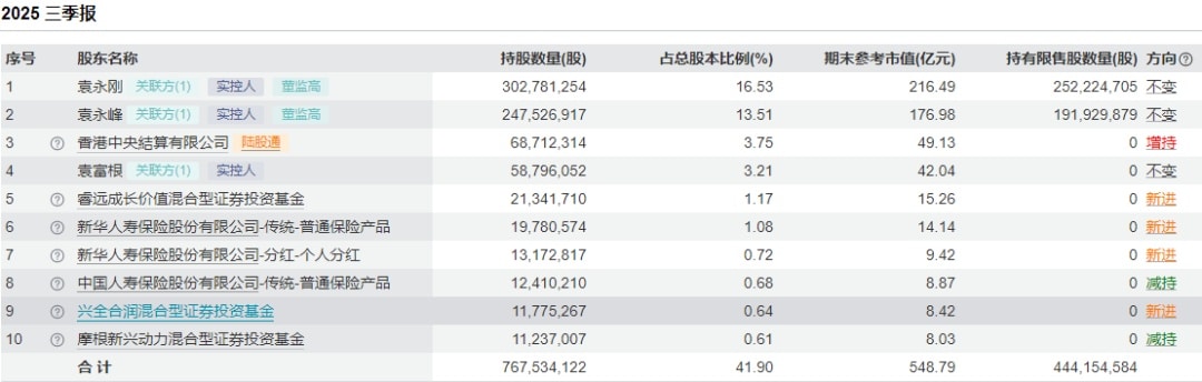 其中,睿远成长价值、兴全合润均为新进前十大股东,睿远成长价值三季度的持股数量由 784.88 万股增至 2134.17 万股,兴全合润是新进持有;摩根新兴动力三季度则是将持股数量由 1246.84 万股减少至 1123.7 万股。