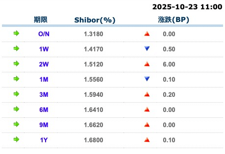 上海银行间同业拆放利率 (Shibor)14 天品种转升至 1.5% 上方。具体来看,隔夜 Shibor 与前日持平,报 1.3180%;7 天 Shibor 下跌 0.50BP,报 1.4170%;14 天 Shibor 上涨 6.00BP,报 1.5120%。