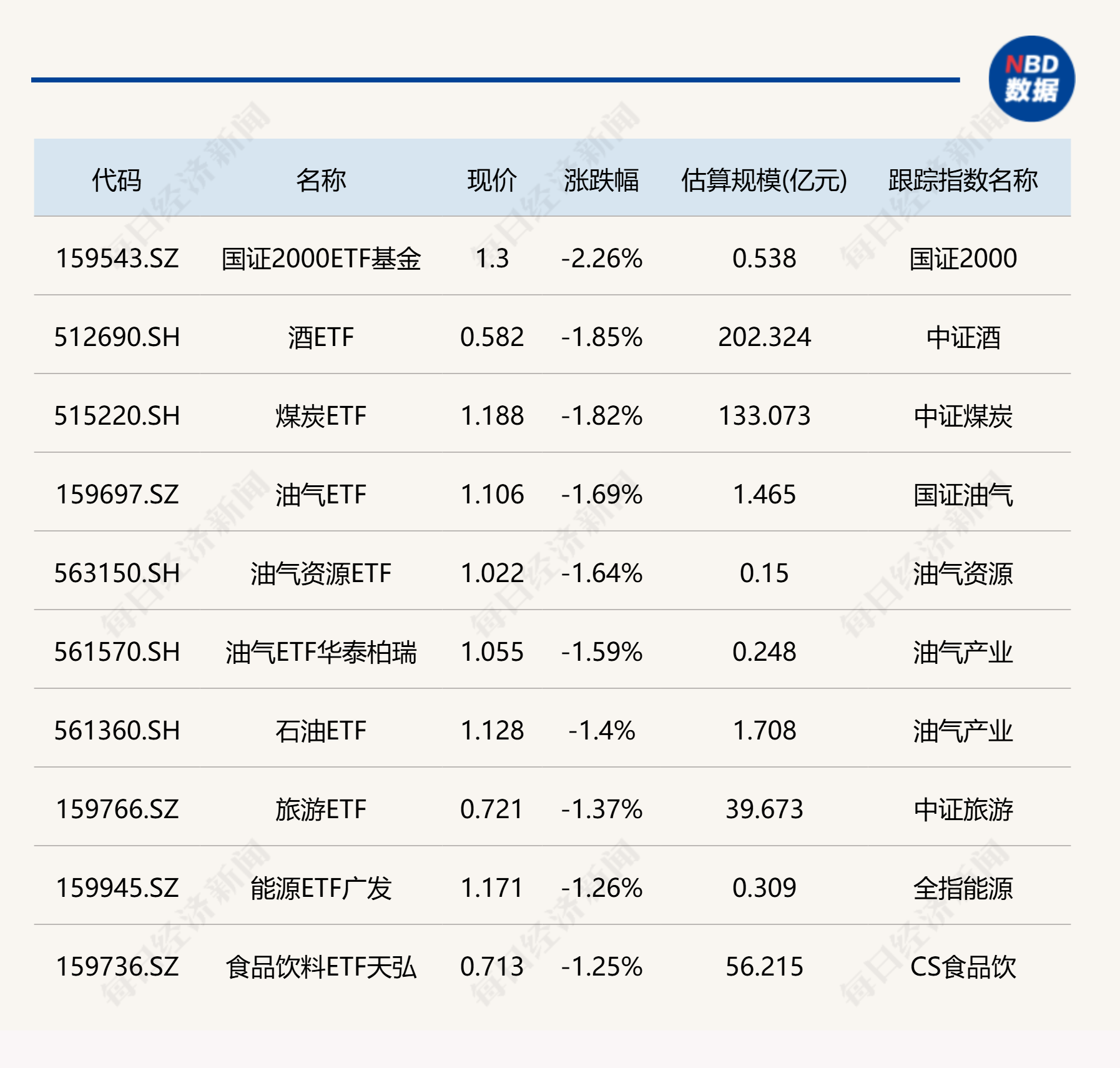 下跌方面,国证 2000ETF 基金跌超 2%。