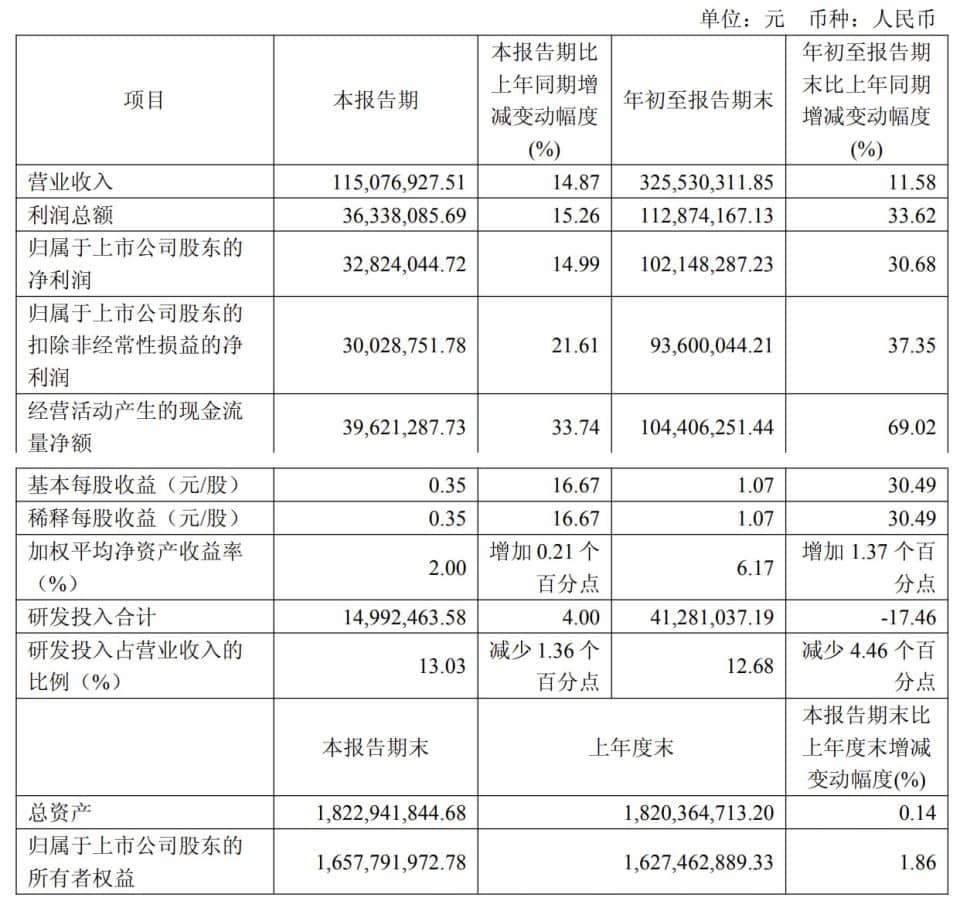 从前三季度整体表现来看,伟思医疗累计实现营业收入 3.26 亿元,同比增长 11.58%,扣非净利润为 9360.00 万元,同比增长 37.35%。