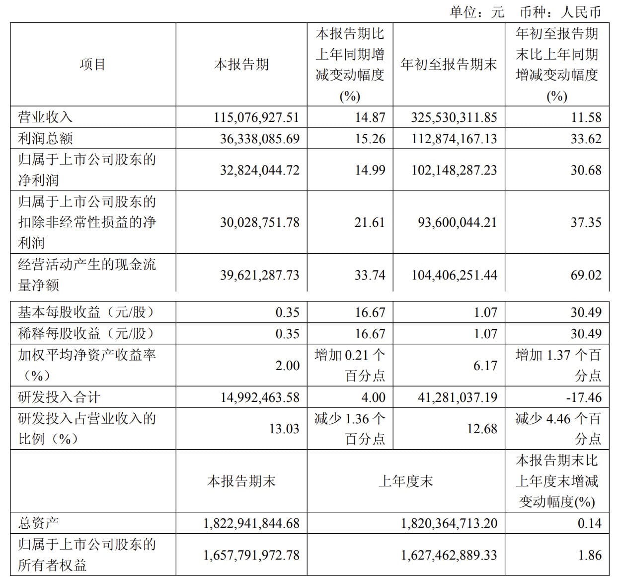 《科创板日报》10 月 23 日讯 (记者 史士云)10 月 22 日晚间,伟思医疗 (688580.SH) 披露了第三季度业绩报。报告期内,公司实现营收 1.15 亿元,较上年同期增长 14.87%;归母净利润为 3282.40 万元,同比增幅达 14.99%,扣非净利润为 3002.88 万元,同比增长达 21.61%。