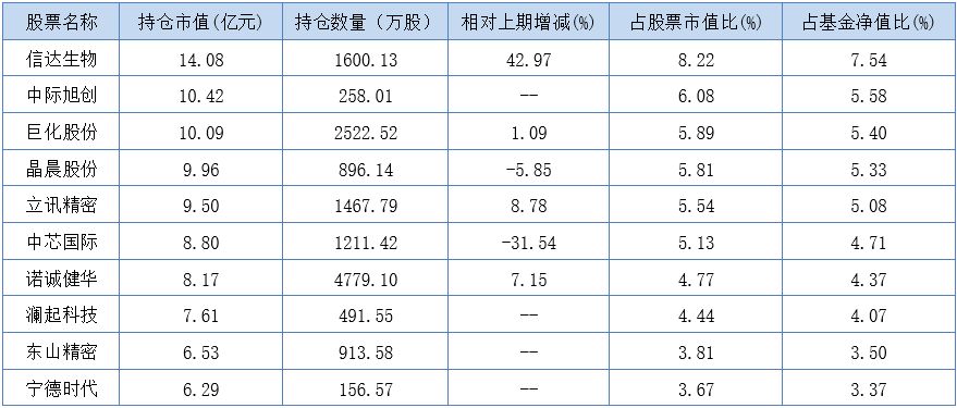 中际旭创、澜起科技、东山精密、宁德时代等个股新进前十大重仓股,二季度重仓的小米集团-W、金蝶国际、蓝思科技、阿里巴巴-W 则掉出前十大重仓股行列。