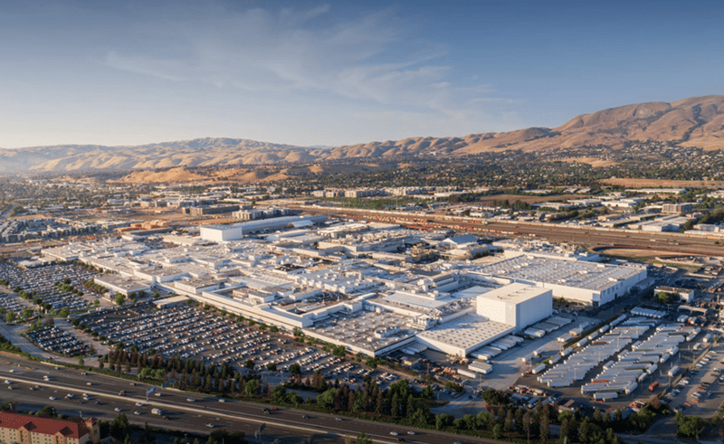 特斯拉加州弗里蒙特工厂,是他们在 2010 年以 4200 万美元收购而来,最初是通用汽车在上世纪 60 年代投入运营的一座工厂,1962 年至 1982 年间隶属于通用汽车,1984 年至 2009 年,则是丰田汽车和通用合资的新联合汽车制造公司的工厂,在丰田和通用汽车的合资公司运营期间,这一工厂生产了超过 800 万辆汽车。