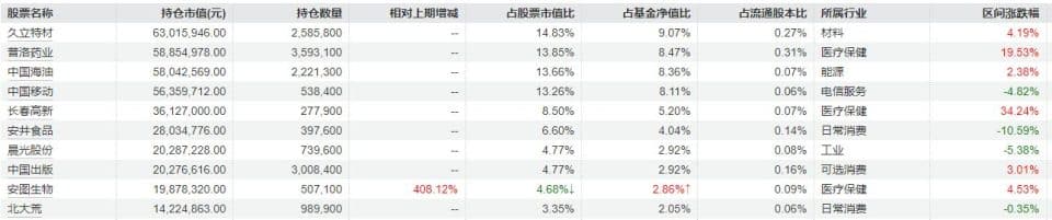 就重仓股来看,久立特材、普洛药业、中国海油、中国移动、长春高新等出现在名单中。上述个股也是他此前多个季度、多只在管基金喜欢重仓的标的。