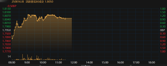 财联社 10 月 28 日讯 (编辑 杨斌)在央行恢复买卖国债操作的重大利好催化下,昨日尾盘,债市收益率大幅下行。而情绪快速释放后,今天上午,债市收益率震荡上行,10 年国债活跃券收益率调整 1BP,回到 1.80%。
