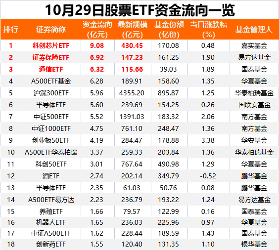 数据显示,头部基金公司旗下部分 ETF 净流入步伐持续。