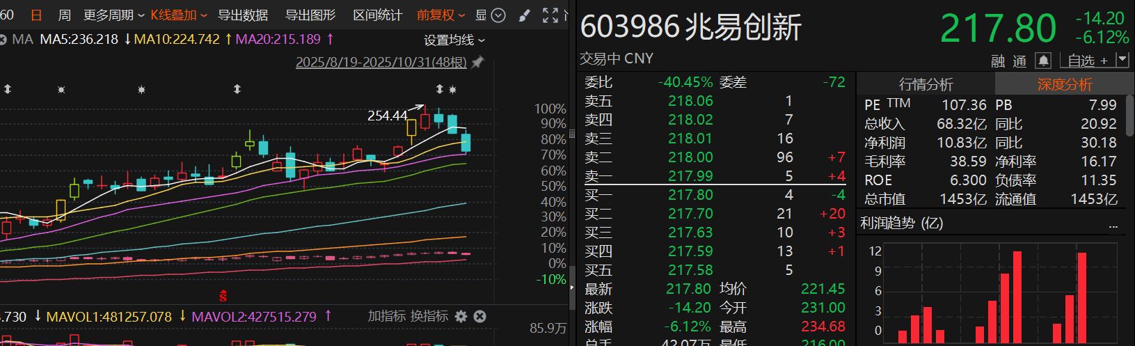 兆易创新是今年半导体的大牛股,今年年初至 10 月 31 日,涨幅超过 100%。一直以来,葛卫东都重仓兆易创新,在本轮上涨中赚得盆满钵满。今年三季度,葛卫东在兆易创新上涨过程中减仓了 170 万股;但剩余持仓仍达到 1703 万股,市值高达 37.43 亿元,为其第一大重仓股。值得一提的是,近期兆易创新股价再创新高。如果葛卫东近期没有减持,那么兆易创新每涨跌 1%,他的持仓市值波动就高达 300 万元以上。
