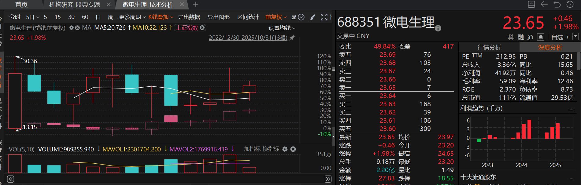 微电生理是首次被葛卫东公开重仓。据介绍,这只 2022 年就挂牌的科创板公司是首个能够提供三维心脏电生理设备与耗材完整解决方案的国产厂商,并实现了 「射频+冷冻+脉冲」 三大主流消融能量产品的协同布局;但该个股在上市后长达三年时间横盘,做大箱体震荡。目前其历史高点,还要追溯到 2022 年上市首年。