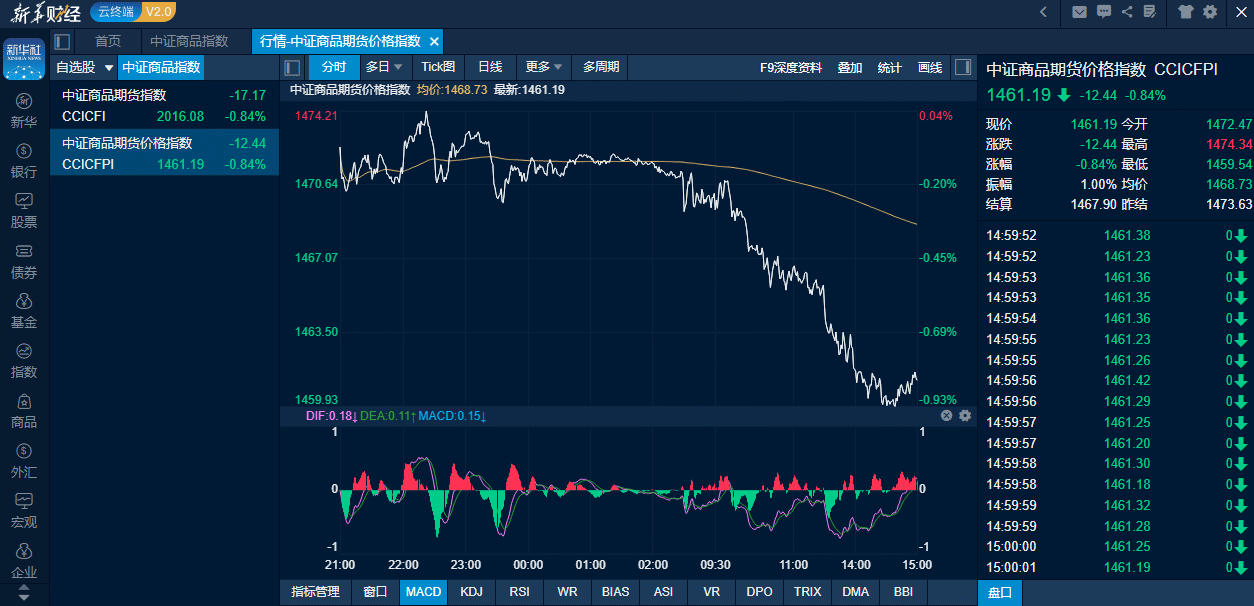 图为中证商品期货价格指数日内走势图 (来源:新华财经专业终端)