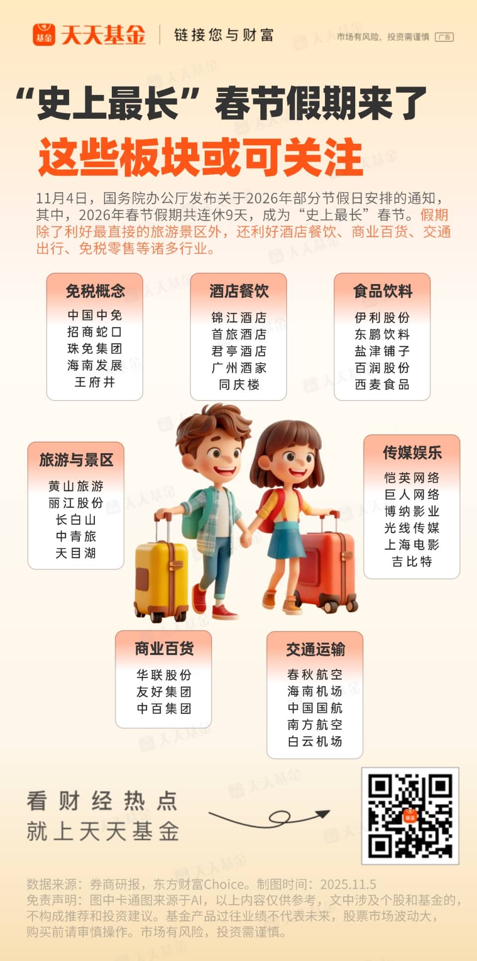 分析人士指出,9 天的超长假期,不仅会刺激更多的长途游和跨省游,更重要的是会显著提升游客的停留时间和过夜需求,还将带动异地餐饮消费,酒店、景区、餐饮、交通等行业有望受益。