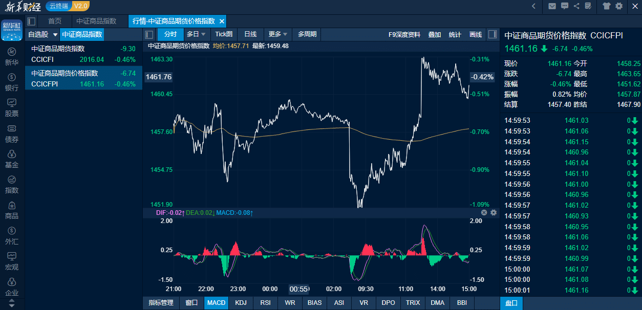 图为中证商品期货价格指数日内走势图 (来源:新华财经专业终端)